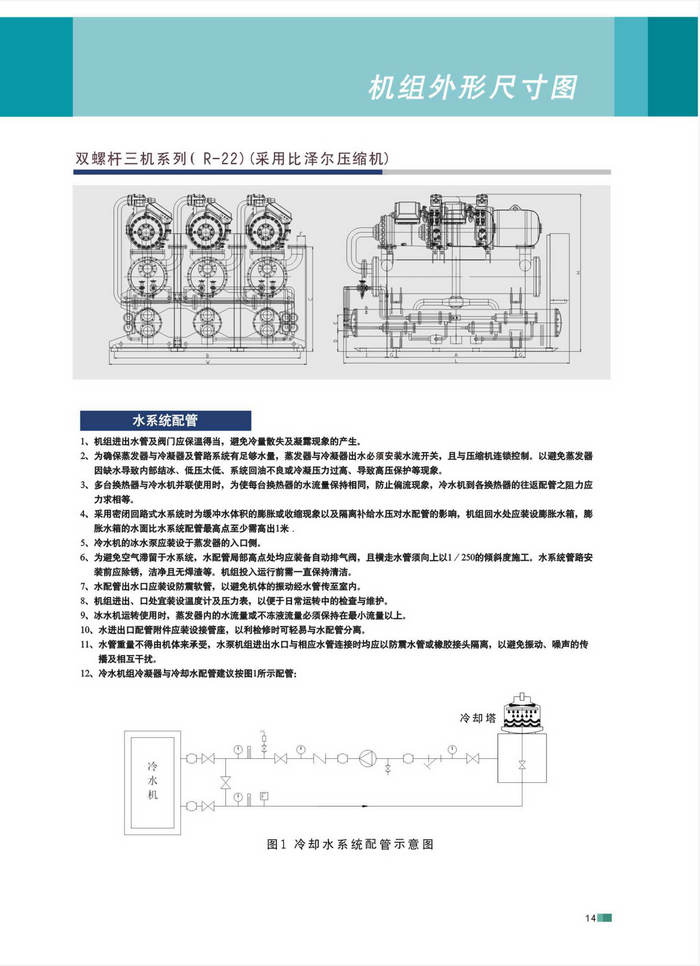 水冷冷水機(jī)(132KW-2160KW) 單螺桿機(jī)采用三菱電機(jī)進(jìn)口壓縮機(jī),使得高低壓之間串氣減至最小, 保證機(jī)組低噪音、平穩(wěn)性和高可靠性 雙螺桿機(jī)采用高效率螺桿式壓縮機(jī),壓差方式給油,無(wú)需外加油泵 配置SIEMENS人性化微電腦控制系統(tǒng) 強(qiáng)大的研發(fā)能力可為客戶特別設(shè)計(jì)非標(biāo)產(chǎn)品 采用綠色、環(huán)保的R-134a制冷劑...